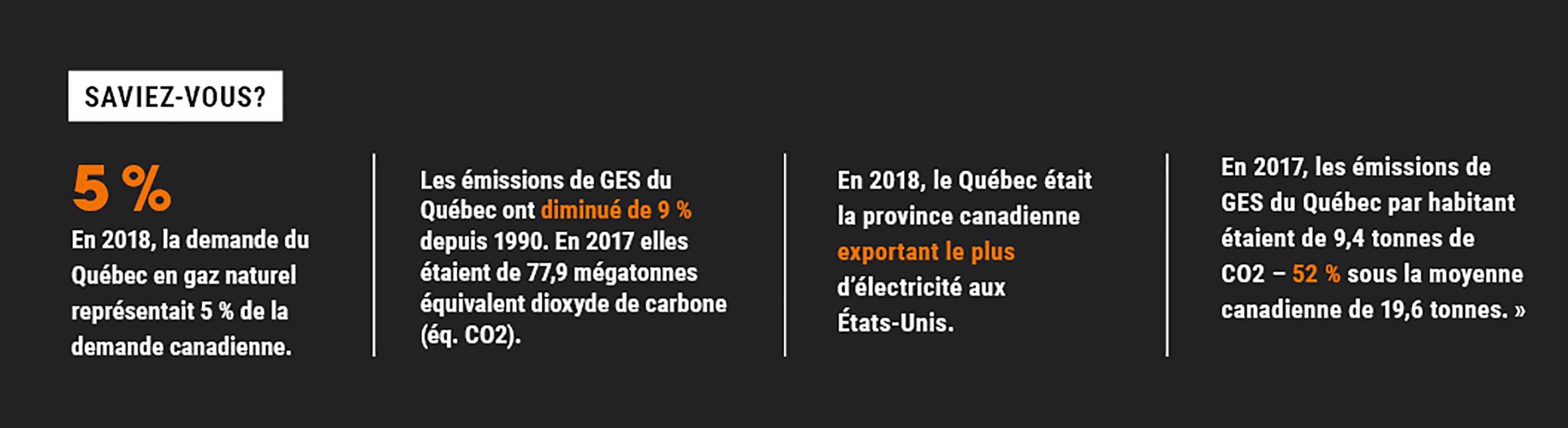 Selon moi, le Québec pourrait servir d’exemple pour le reste du Canada et pour les États-Unis, où, avec tous les bons ingrédients en main (comme l’électricité, le solaire, l’éolienne, le télétravail, etc.), nous pourrions dynamiser l’économie et favoriser une utilisation responsable des combustibles fossiles dans un avenir moins dépendant du carbone. Mais comment y parvenir ?