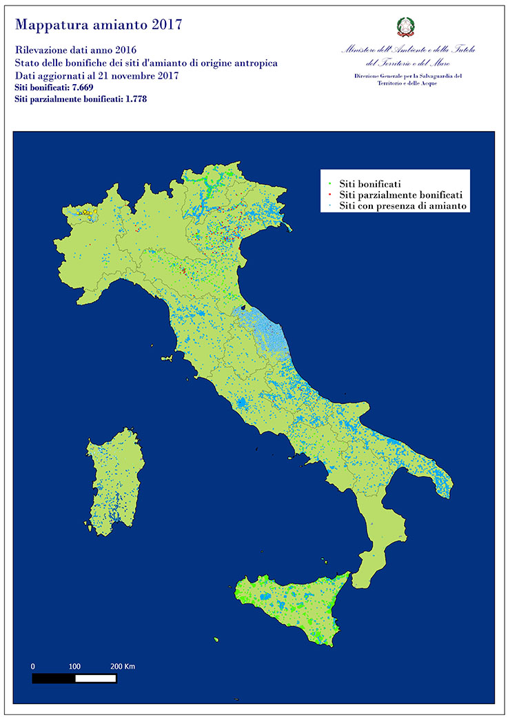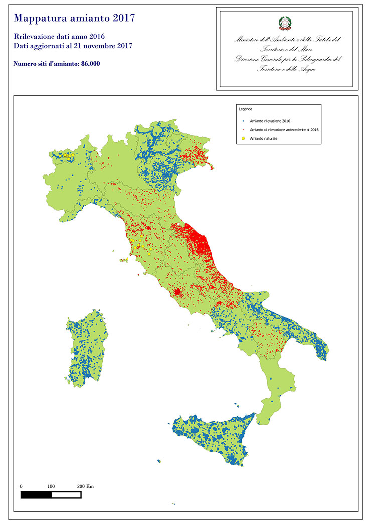 Ai sensi dell'articolo 20 della legge 23 marzo 2001, n. 93 e del regolamento di cui al decreto del Ministero dell’Ambiente e della Tutela del Territorio e del Mare 18 marzo 2003, n. 101 “Regolamento per la realizzazione di una mappatura delle zone del territorio nazionale interessate dalla presenza di amianto”, si stabilisce all’art. 1 comma 3 che “I risultati della mappatura, i dati analitici relativi agli interventi da effettuare e le relative priorità, nonché i dati relativi agli interventi effettuati sono trasmessi annualmente, entro il 30 giugno, dalle regioni e dalle province autonome di Trento e Bolzano al Ministero dell'ambiente e della tutela del territorio”.